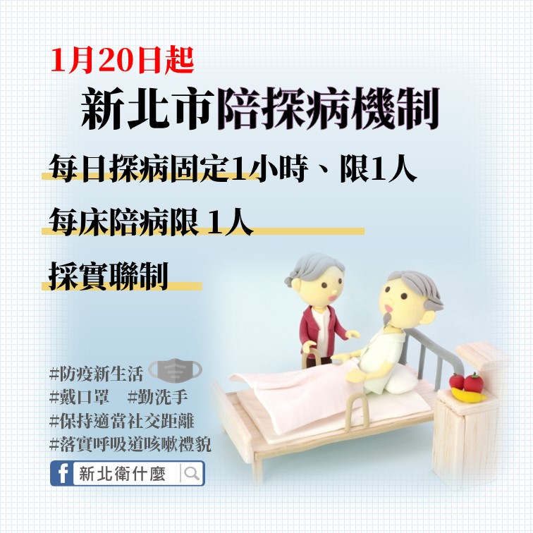 *限縮醫院探病訪視,(20)日起,每日1次1小時,每次探病限1人、陪病1人並採 #實聯制。
