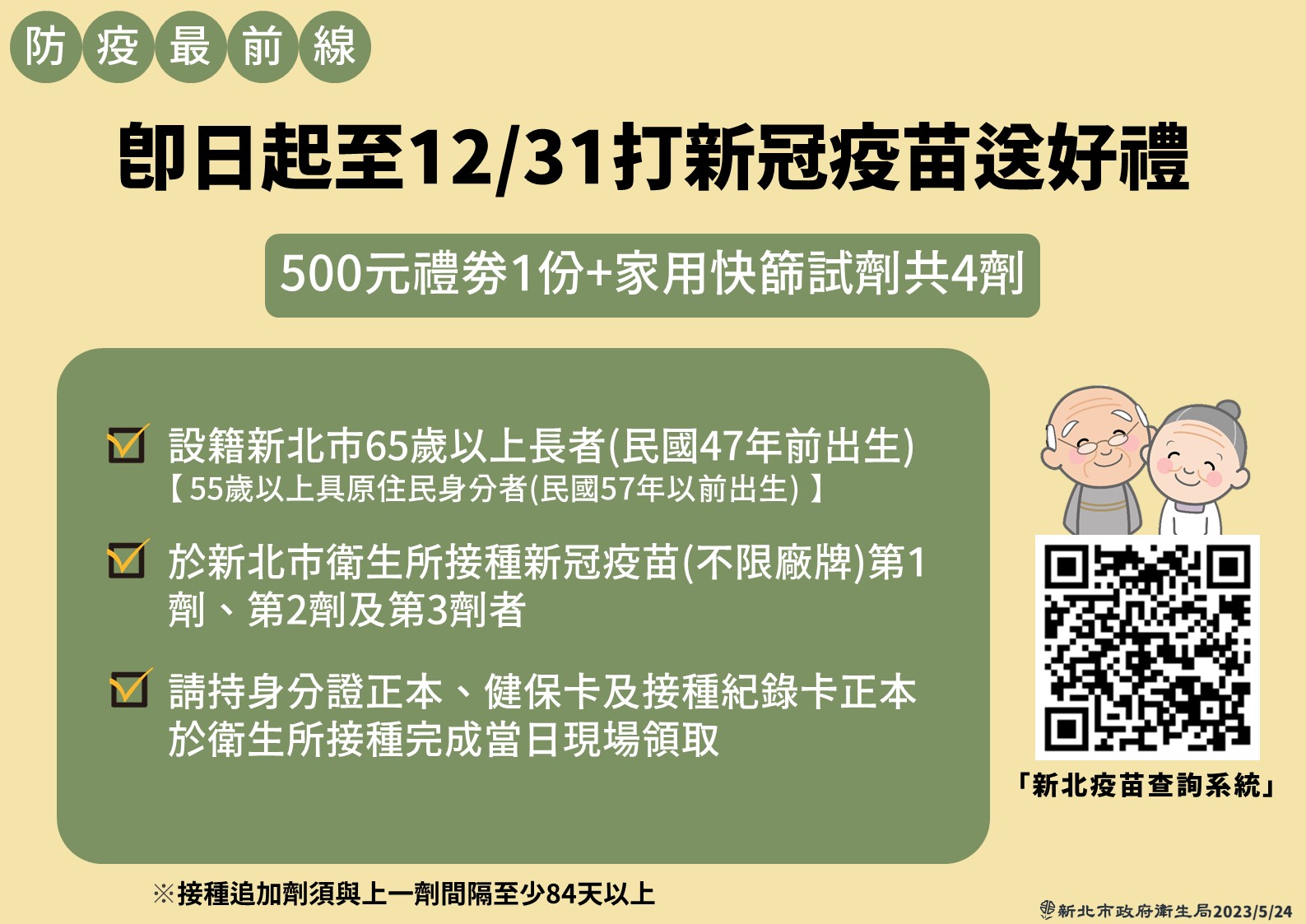 ★領取方式:符合接種資格,完成施打當日現場領取500元超商禮券及快篩劑(不受理補領)