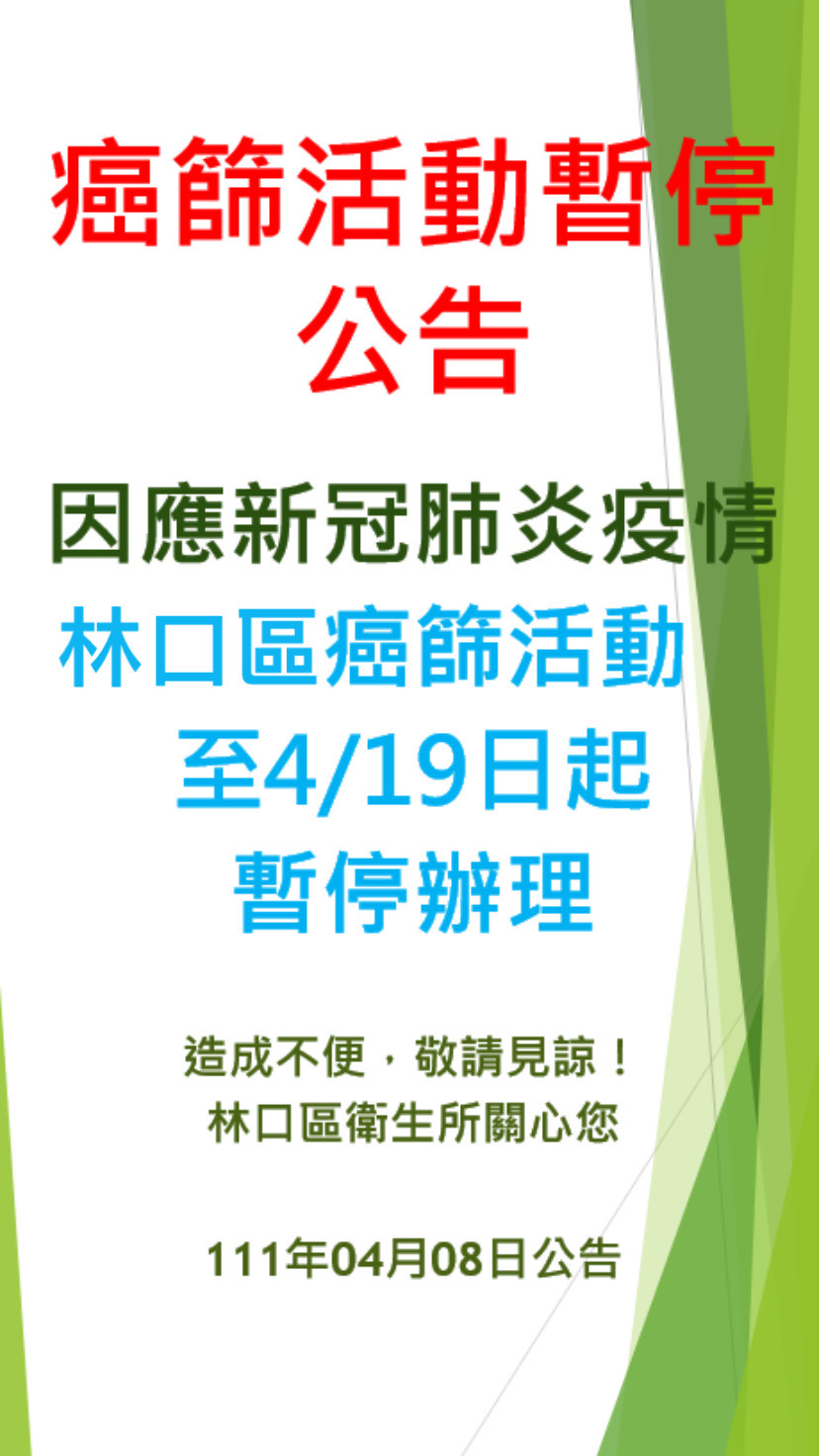 【林口區衛生所】4/19起林口區癌篩活動暫停公告