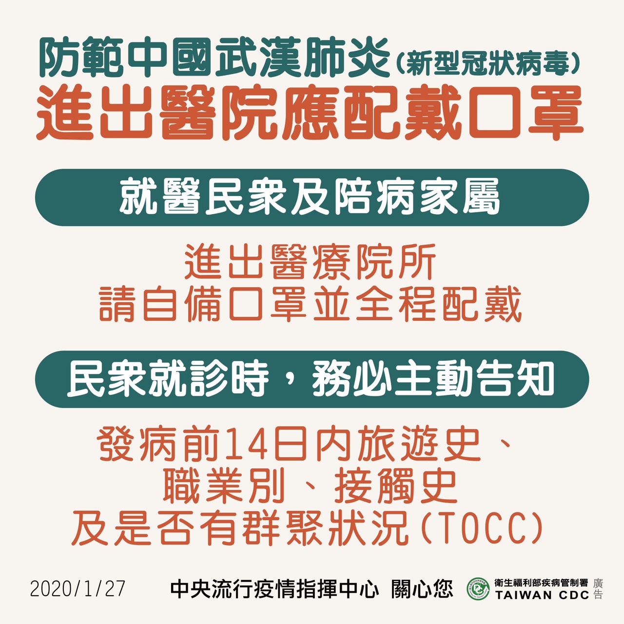 【林口衛生所】因應大陸武漢肺炎,自主協助疫情防疫請配戴口罩