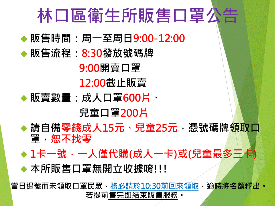 【林口衛生所】本所自2月16日起開辦實名制口罩販售業務