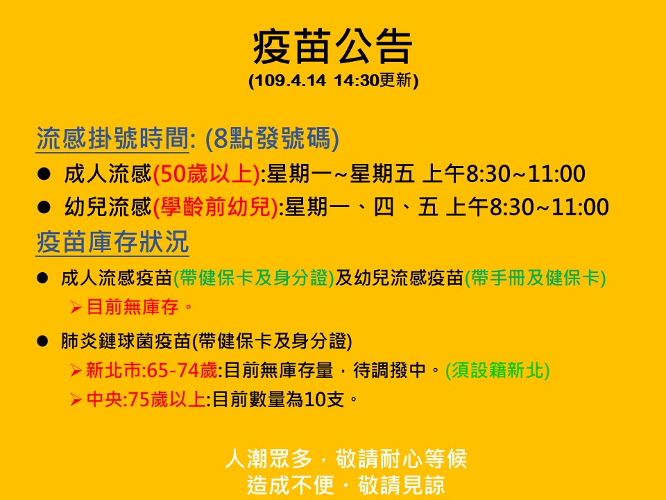 【林口衛生所】流感及肺炎鏈球菌疫苗公告