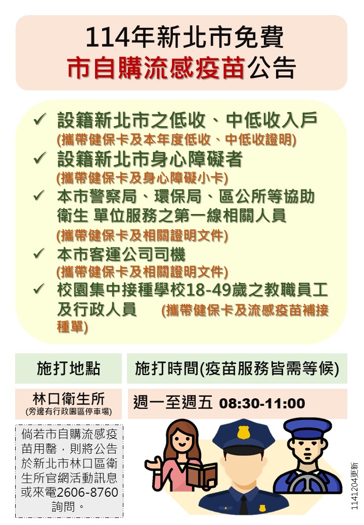 ⚠️ 如遇人事行政局公告之放假日,本所不提供流感疫苗接種服務,敬請民眾留意並多加利用。